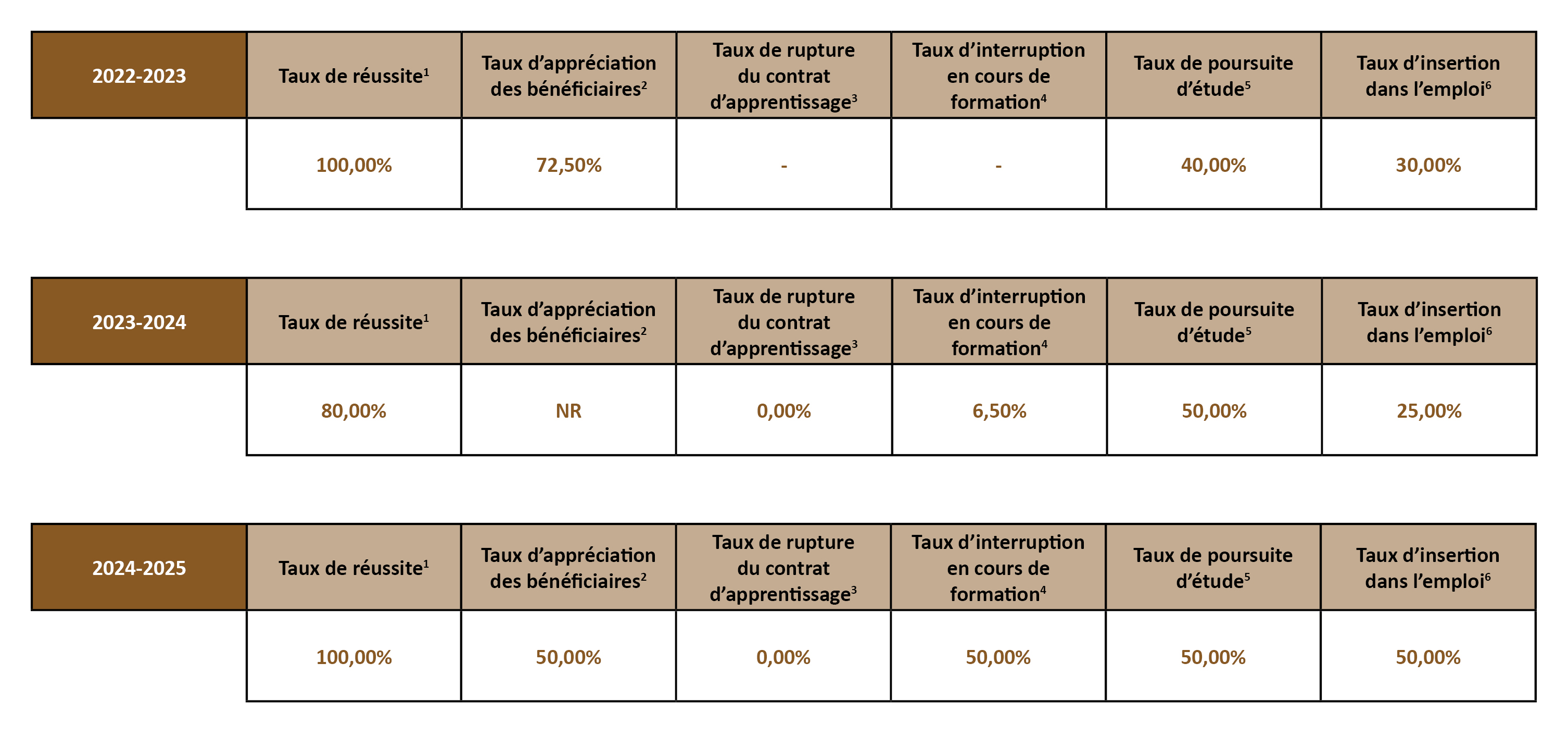 3. Le taux de rupture en cours de formation s'entend lorsqu'aucune solution n'aura permis à l'apprenant de poursuivre soit en apprentissage soit par la voie scolaire dans sa filière de départ ou réorienter.
